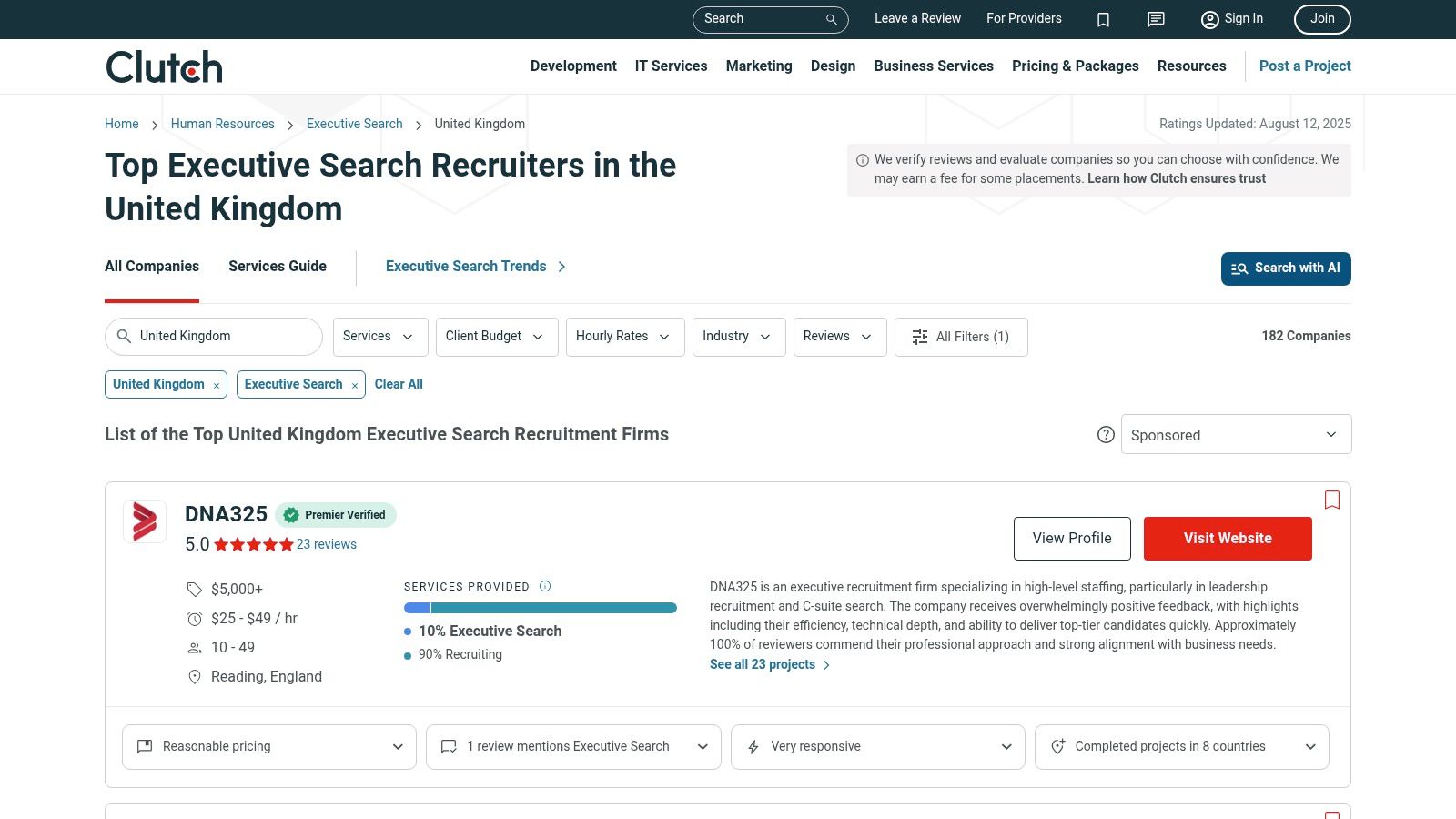 Visit Clutch: Top Executive Search Recruiters in the United Kingdom