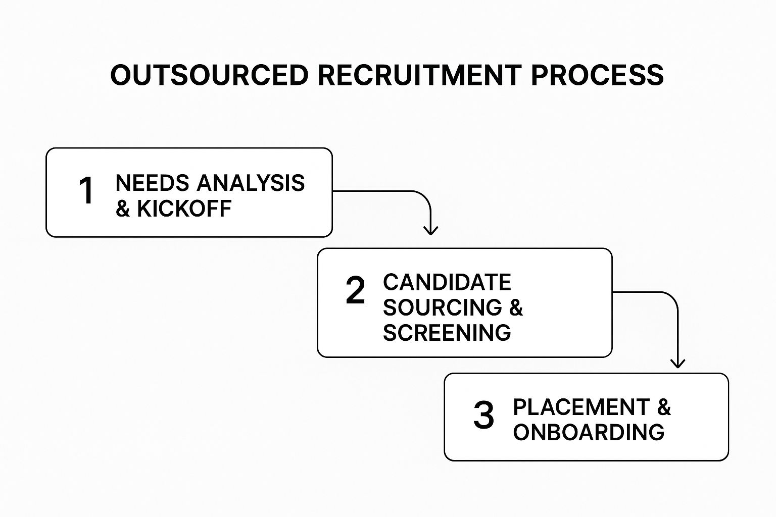 This visual gives you a great bird's-eye view of how the outsourced recruitment process flows, from the initial strategy session right through to the final placement.