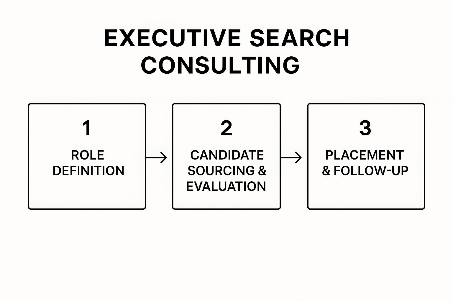 This image gives you a bird's-eye view of the typical executive search workflow, breaking it down into three main phases.