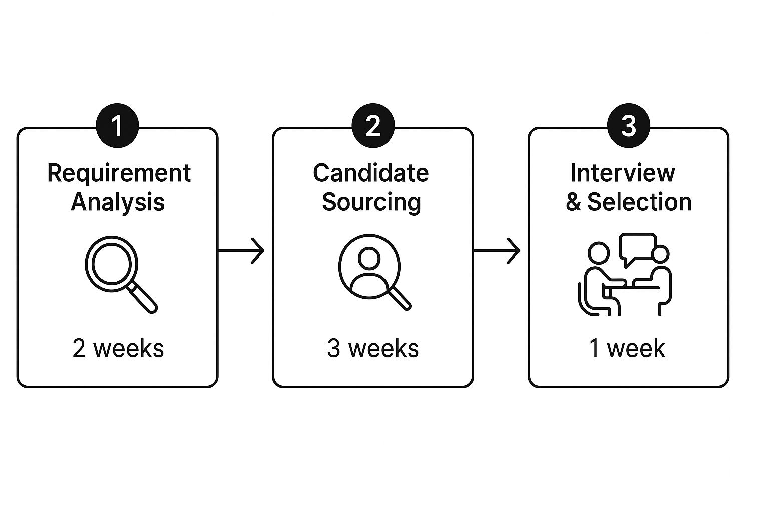 This timeline covers everything from the initial deep-dive consultation where they get to know your business inside and out, right through to the final candidate signing on the dotted line. A good firm will give you a clear, projected timeline from the very start, so you're never left wondering what's happening next.