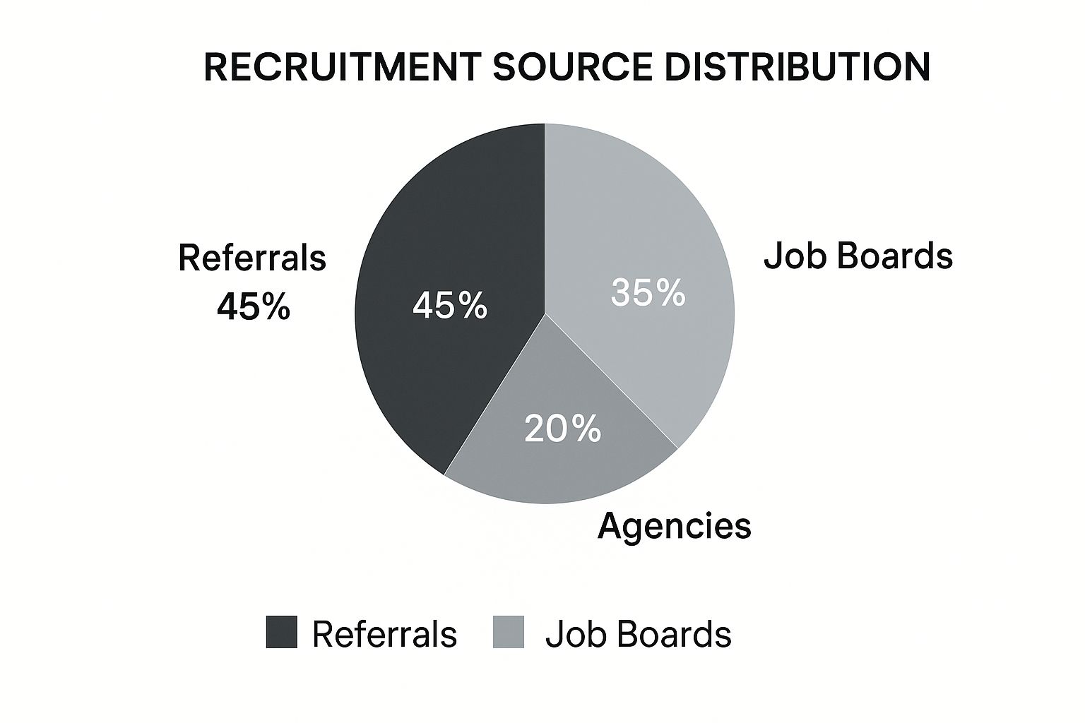 This breakdown shows that a massive 45% of successful hires often come from internal referrals. It’s a powerful reminder that your greatest recruitment tool might just be your current team.
